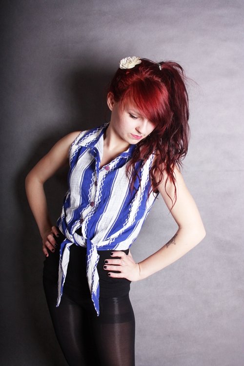 Krótka koszulka wiązana z przodu , rozmiar s .osoba na zdj.nosi rozm.S