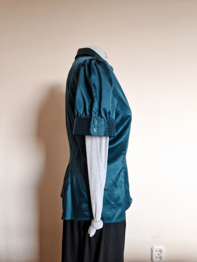 Rękawy typu "bufka", zapinane na kołnierzyk.
