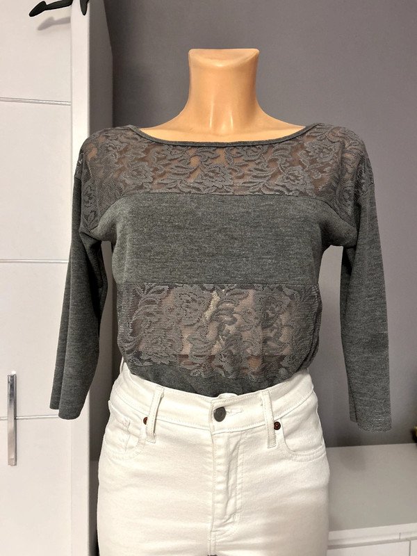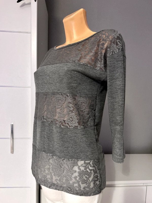 Bluzka szara z koronką firmy Stradivarius, rozmiar S 36. Miękka, elastyczna, rękaw 3/4