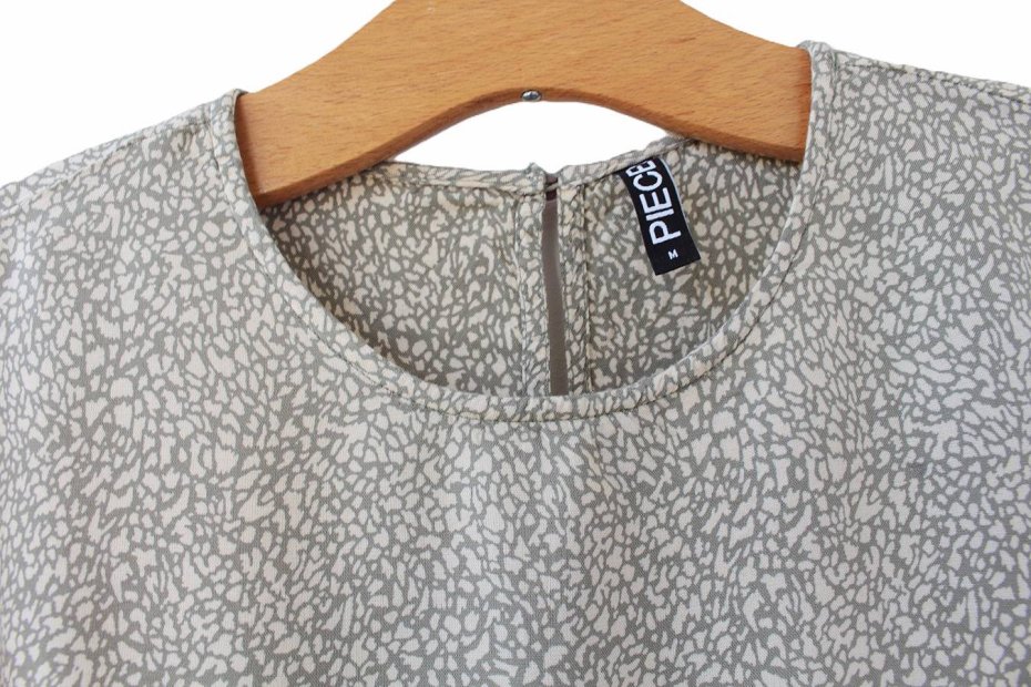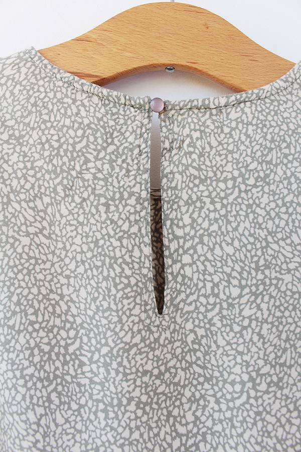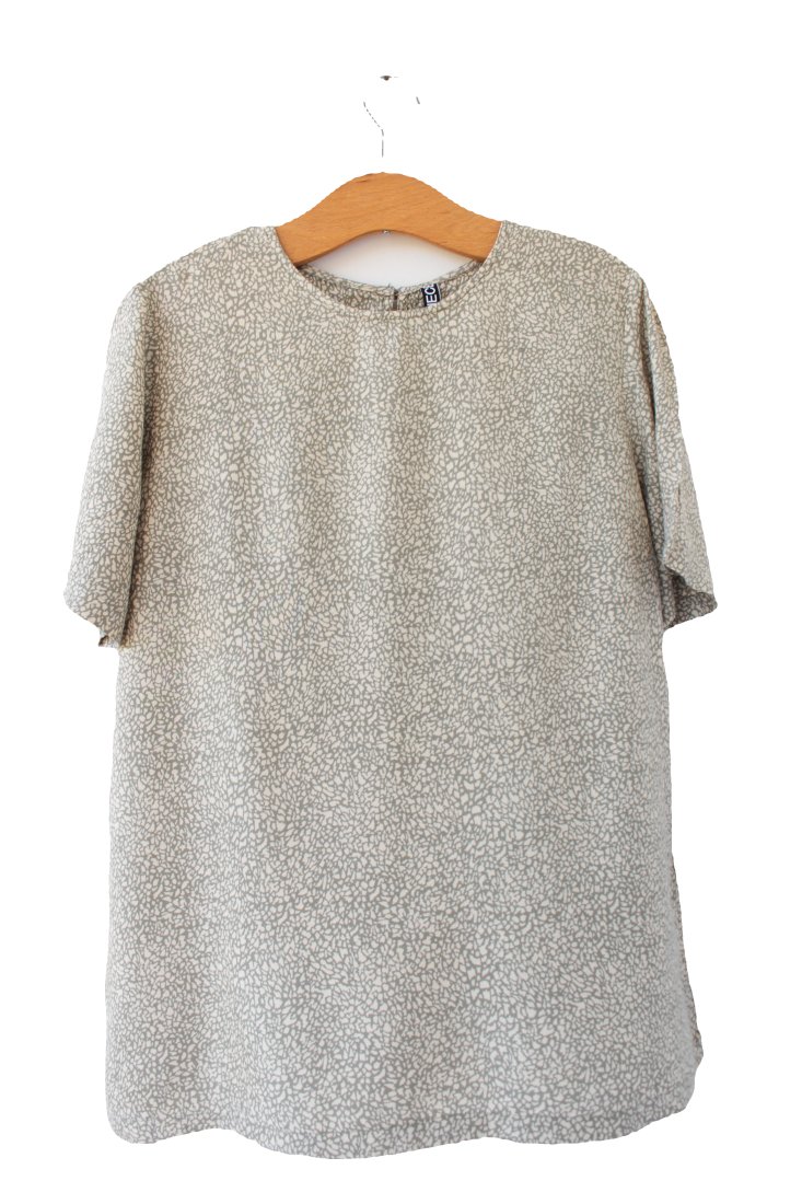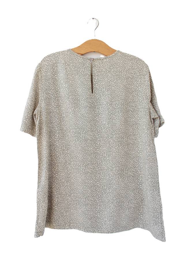 Bluzka vintage w subtelny wzór, wykonana z przewiewnej wiskozy. Z tyłu zapięcie - łezka.