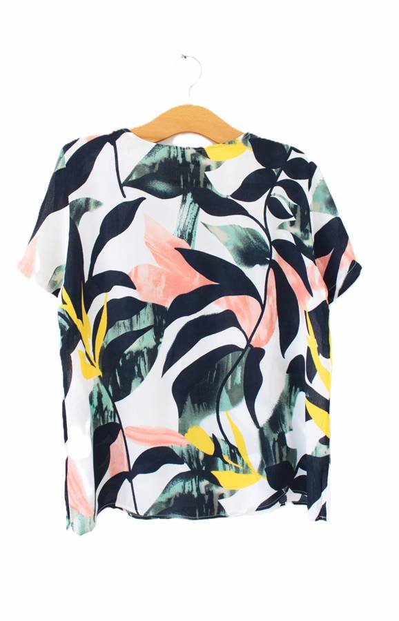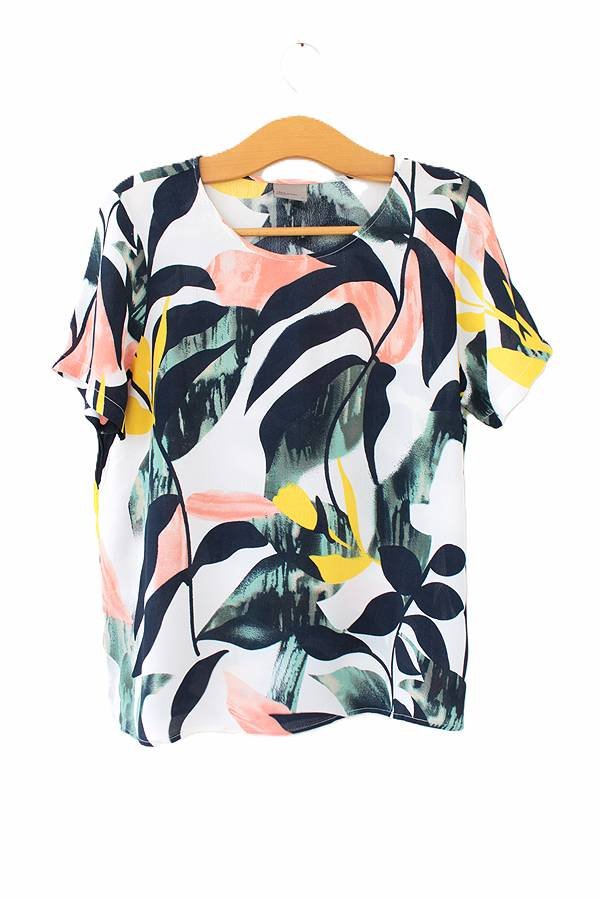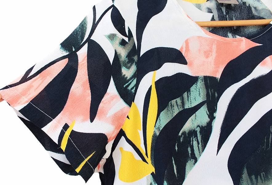 Bluzka vintage w ciekawy deseń wykonana z przewiewnej wiskozy o fakturze typu żorżeta.