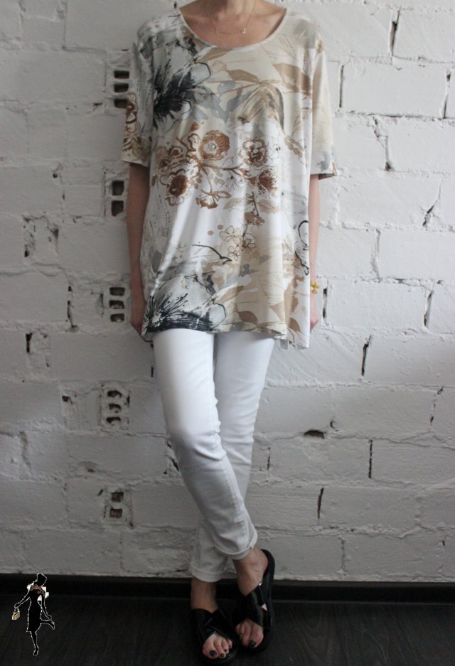 Bluzka w kwiaty. Rozmiar uniwersalny. Wymiary: obwód biustu-65cmx2, obwód bioder-69cmx2, długość bluzki-77cm. Skład materiału: 94% wiskoza, 6% elastan.