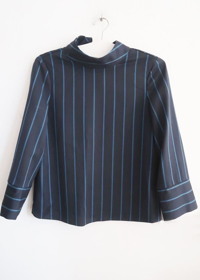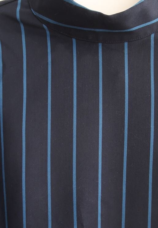 Granatowa bluzka w niebieskie paski.