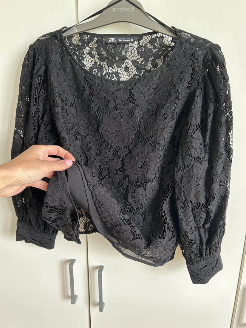 4.  > Bluzka z koronki Zara czarna koronkowa crop top (nr 7100854)