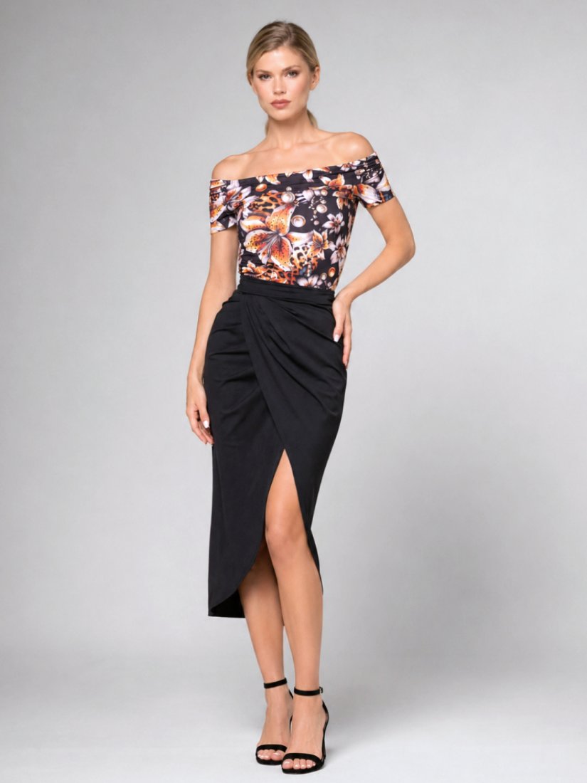 Bluzka, która odsłania ramiona, podkreśla talię i miękko otula sylwetkę. Będzie ona idealna na wiele okazji zarówno na dzień jak i na imprezę!