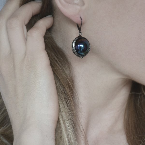 Niezwykle efektowne kolczyki z ceramicznymi kuleczkami w interesującym kolorze. Oprawa w kolorze starego srebra nadaje kolczykom uroku. Długość całego kolczyka to ok. 4 cm. Biżuteria w 100% wykonana ręcznie, poszczególne sztuki mogą się minimalnie różnić.