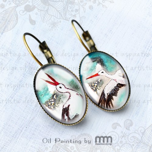 Kolczyki Bociany to bardzo kobiece i malutkie dzieła sztuki, które łączą nowoczesność z odrobiną antycznego powiewu. Obrazki pod szkiełkiem to obraz mojego autorstwa.