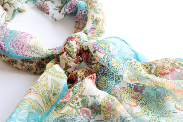 Zwiewny szal w bogate, roślinne wzory. Szal jest niezwykle kobiecy, ładnie się układa i można nosić go na wiele sposobów.