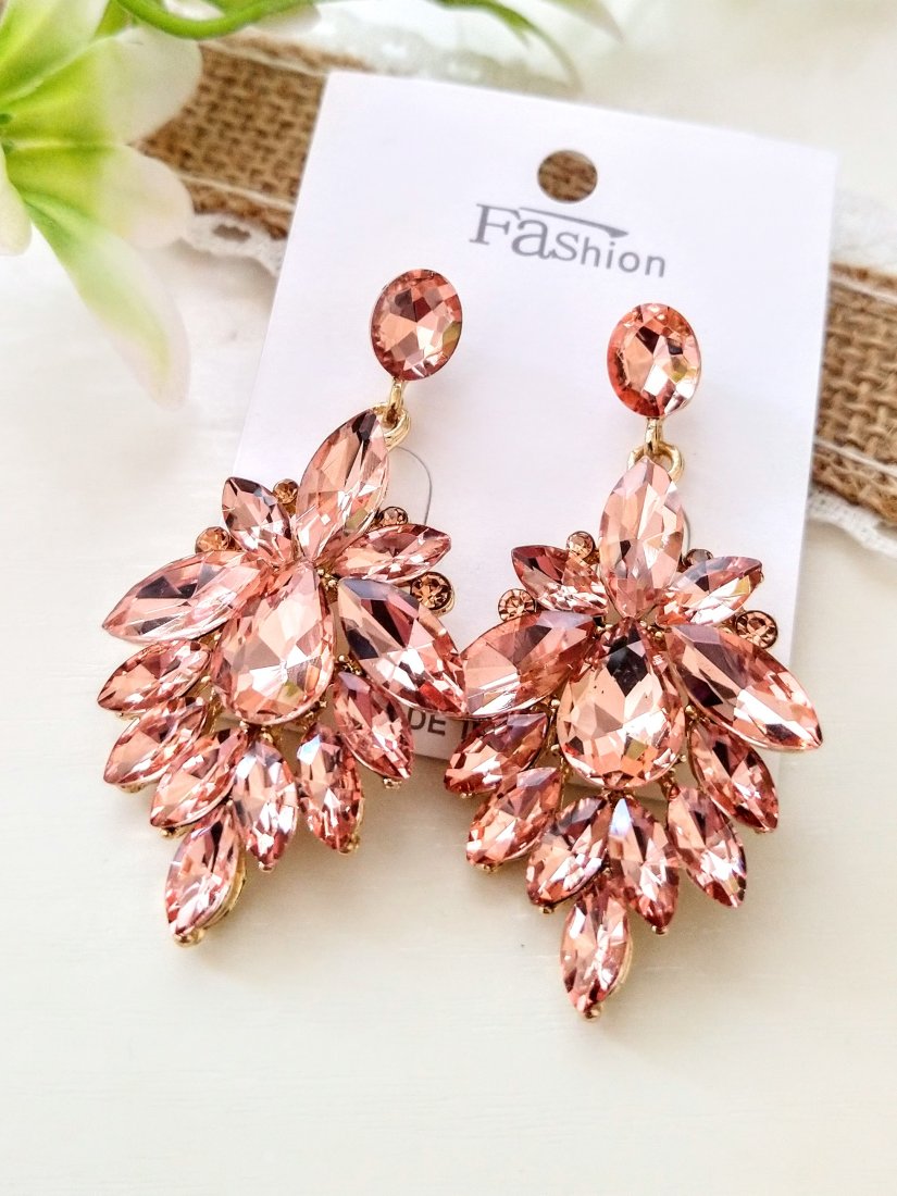 K7506 Lśniące wieczorowe kolczyki w łososiowym kolorze.