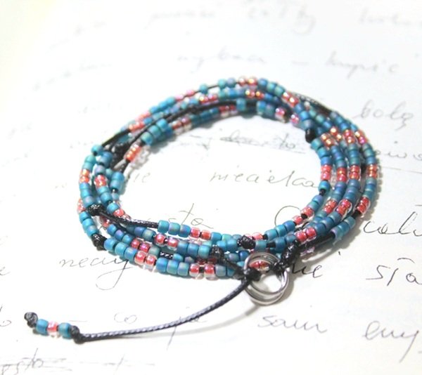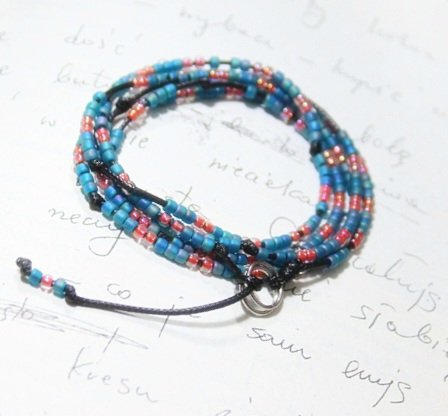 Bransoletka wykonana z nylonowego grubszego jubilerskiego sznurka oraz koralików toho 3 mm .