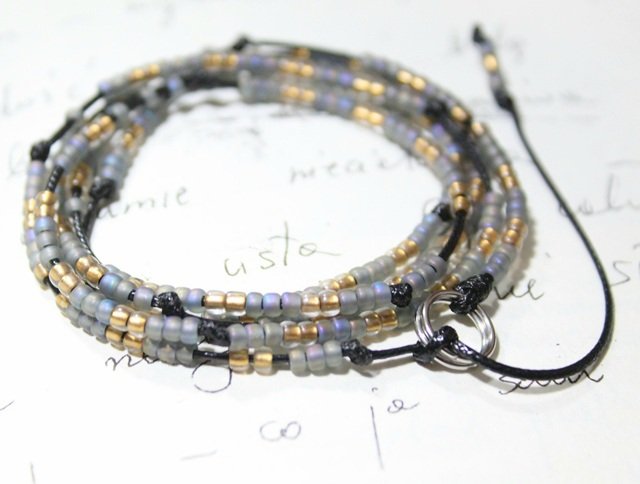 Bransoletka wykonana z nylonowego grubszego jubilerskiego sznurka oraz koralików toho 3 mm .