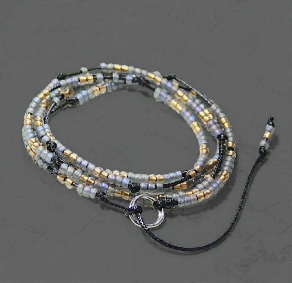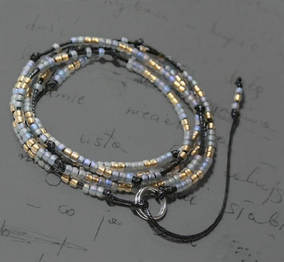 Bransoletka wykonana z nylonowego grubszego jubilerskiego sznurka oraz koralików toho 3 mm .