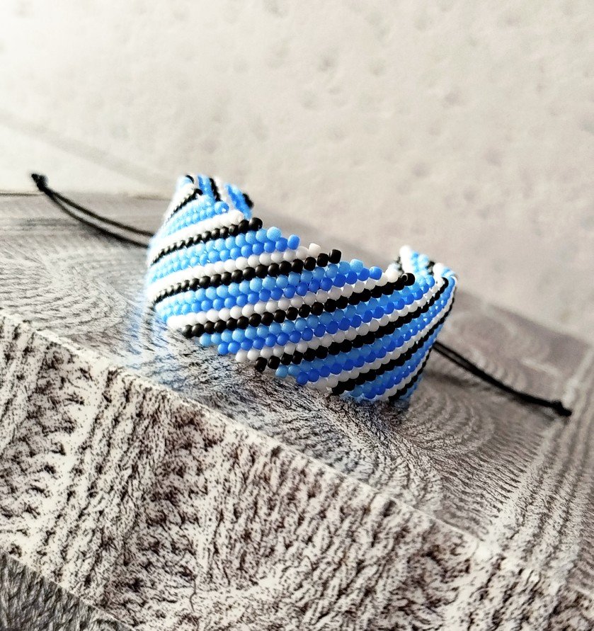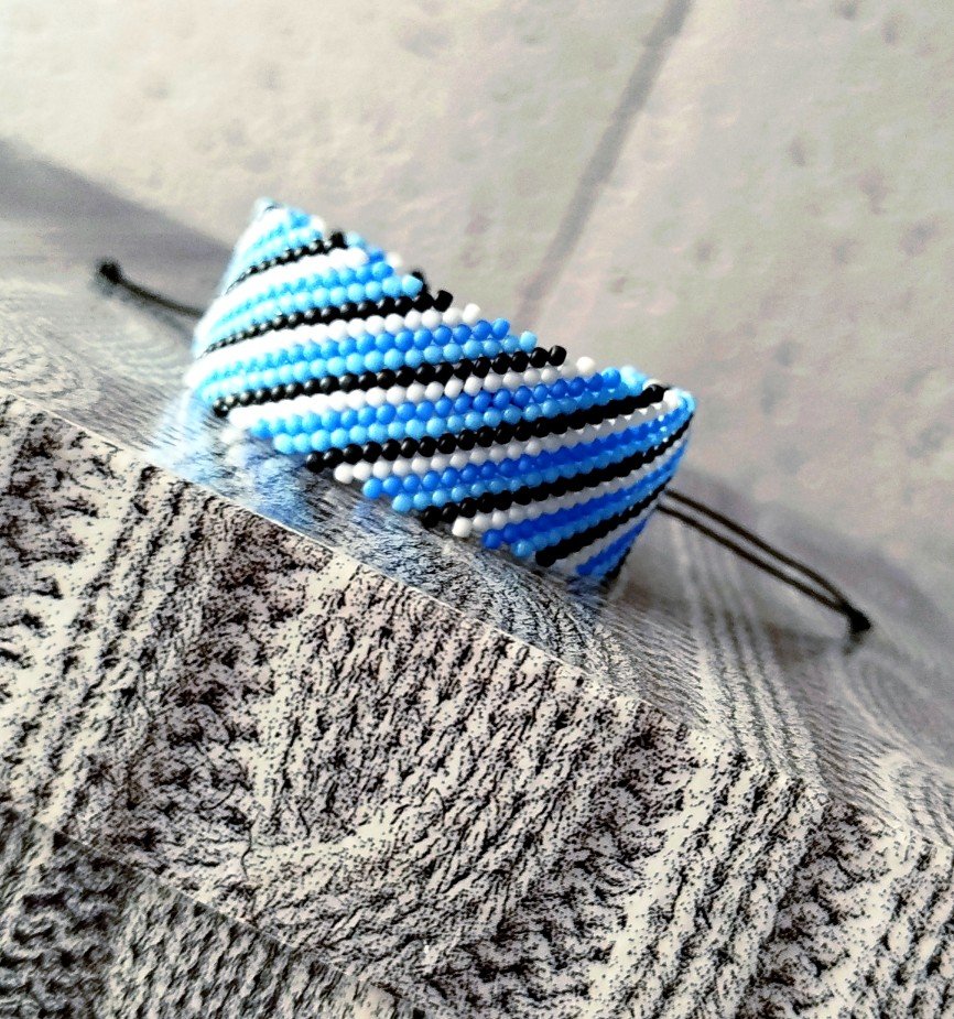 Efektowna bransoletka utkana ręcznie pracochłonną metodą beadingu ze szklanych japońskich koralików TOHO .