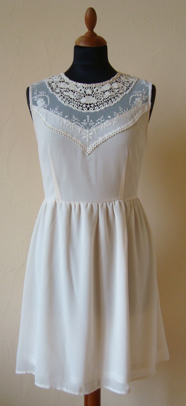 kolor ecru z pięknym koronkowym haftem.