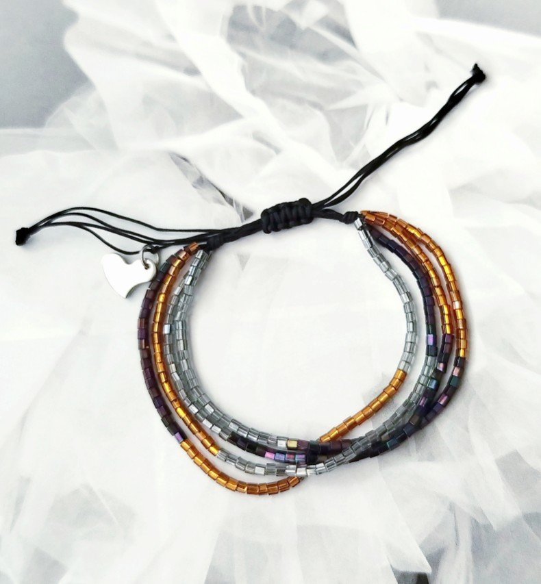 Bransoletka wykonana z jubilerskiego sznurka oraz koralików toho hexagon, które efektownie skrzą.