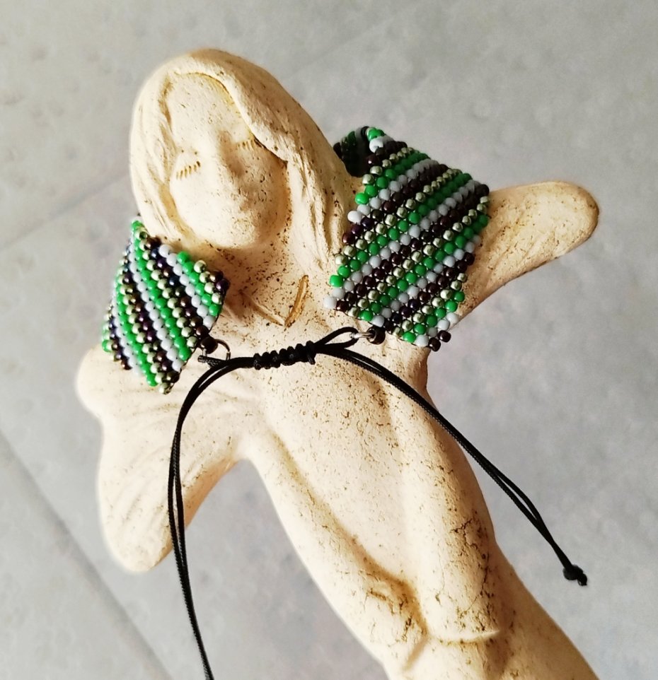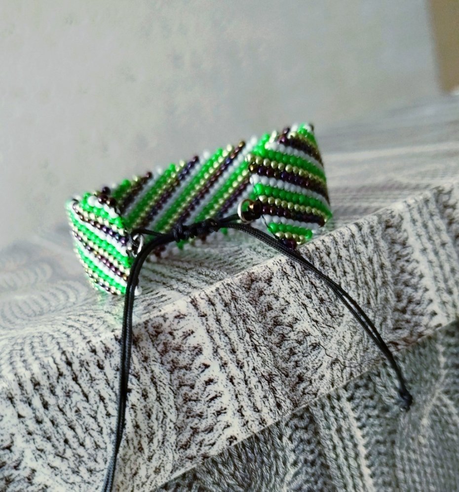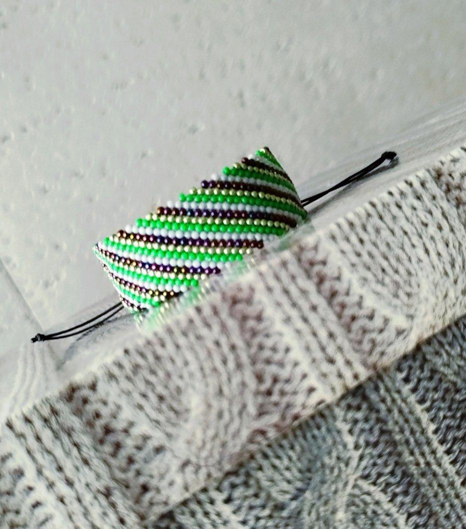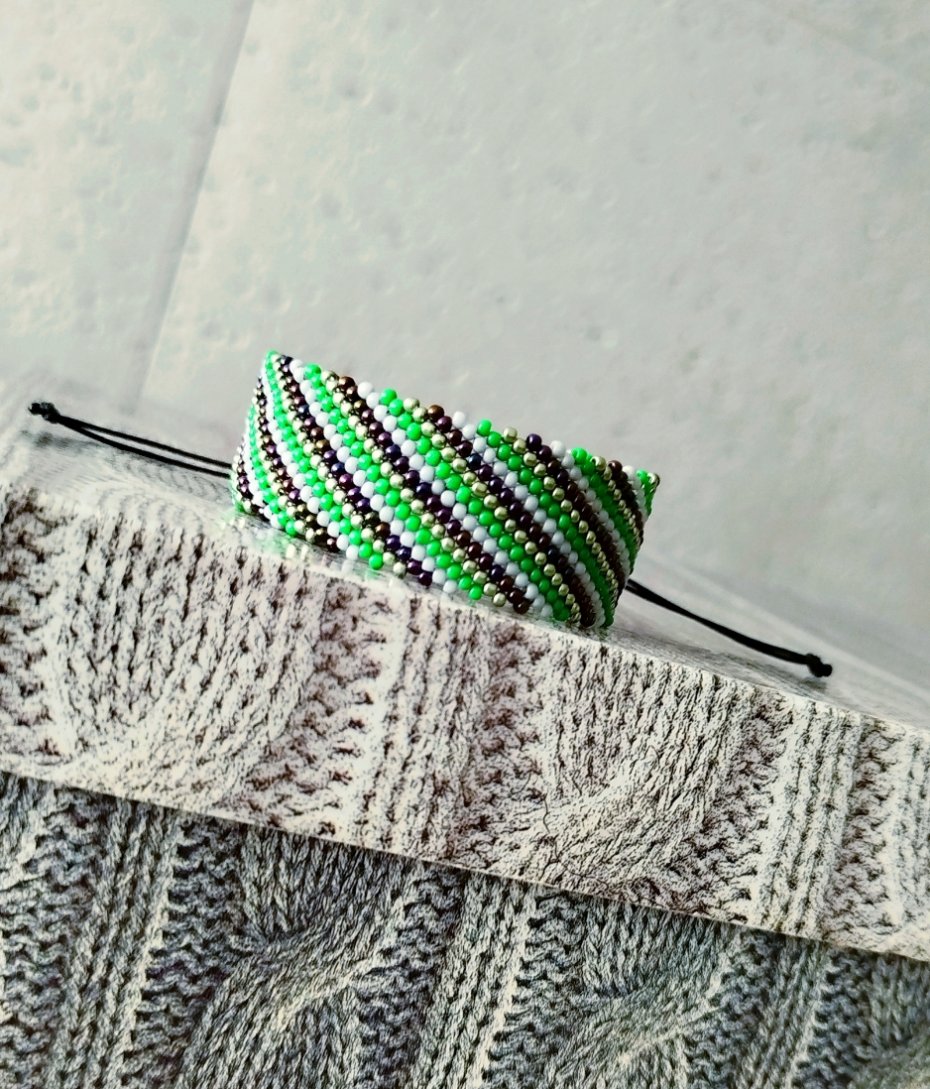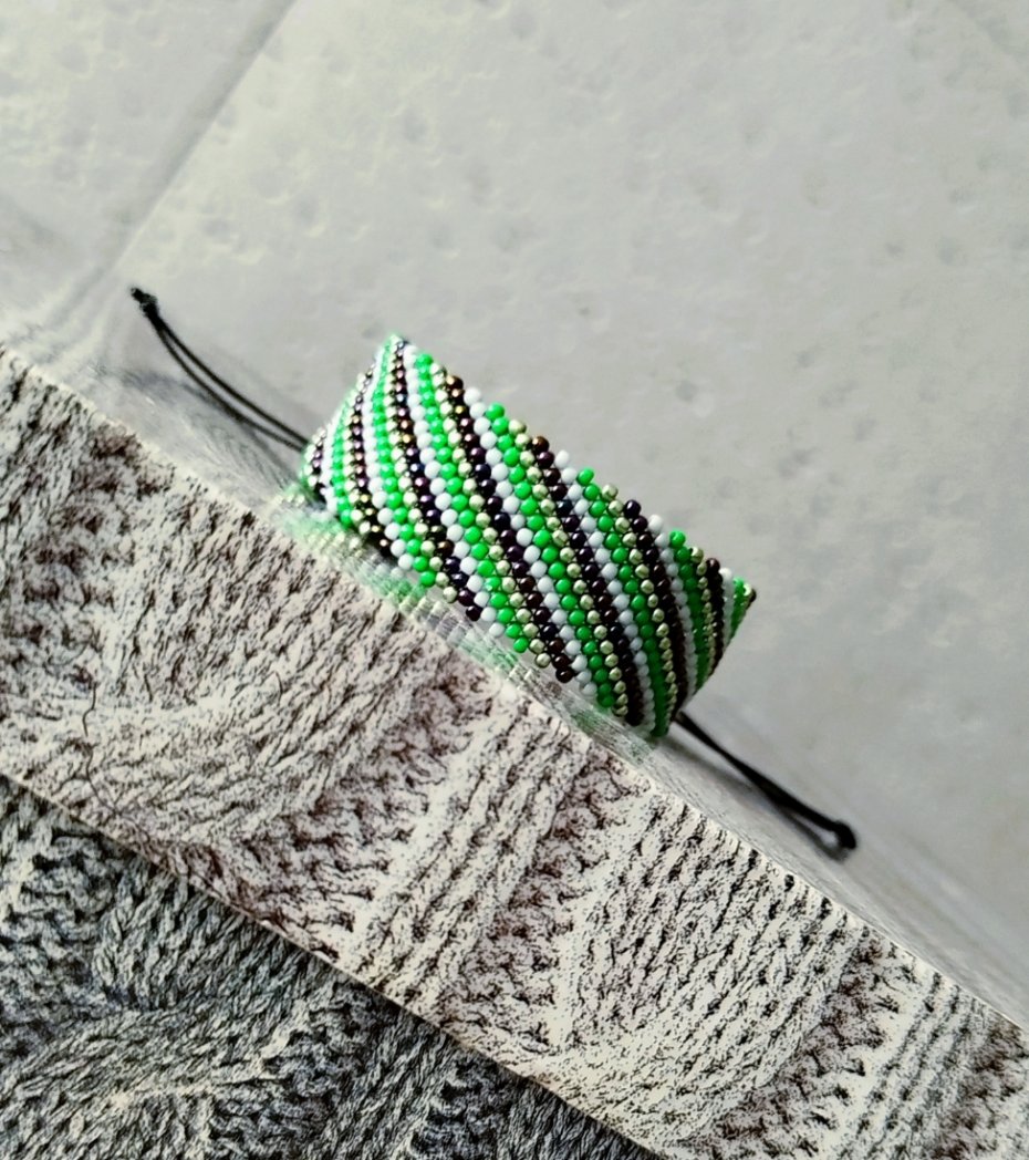 Efektowna bransoletka utkana ręcznie pracochłonną metodą beadingu ze szklanych japońskich koralików TOHO .