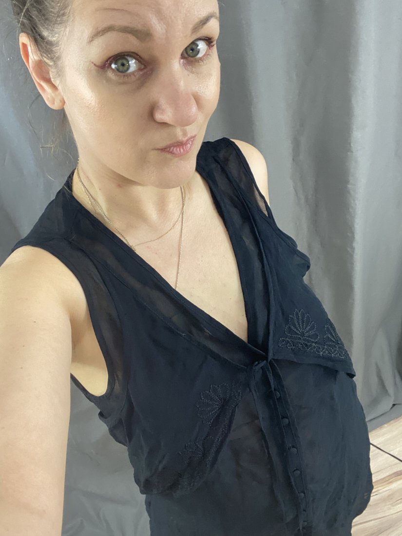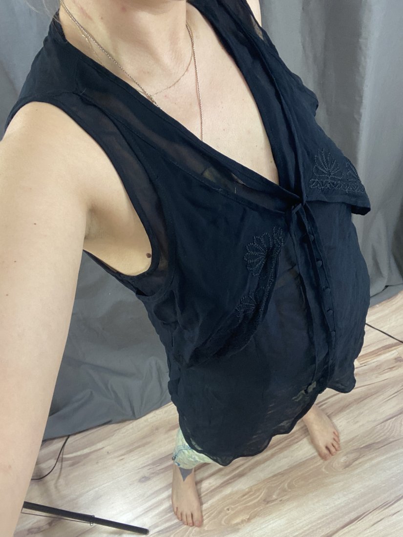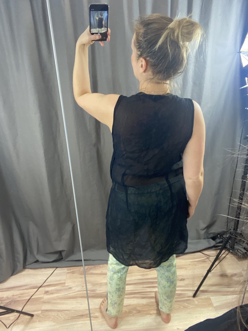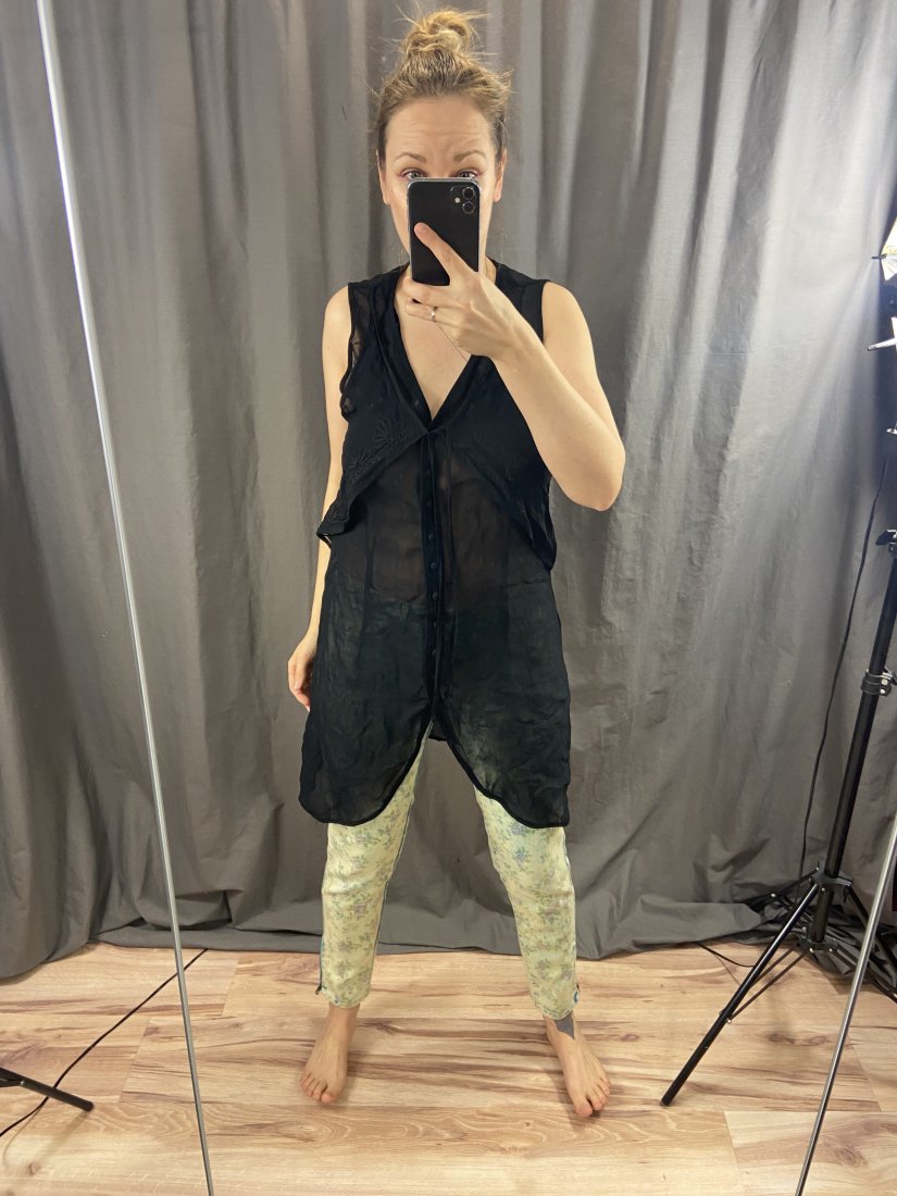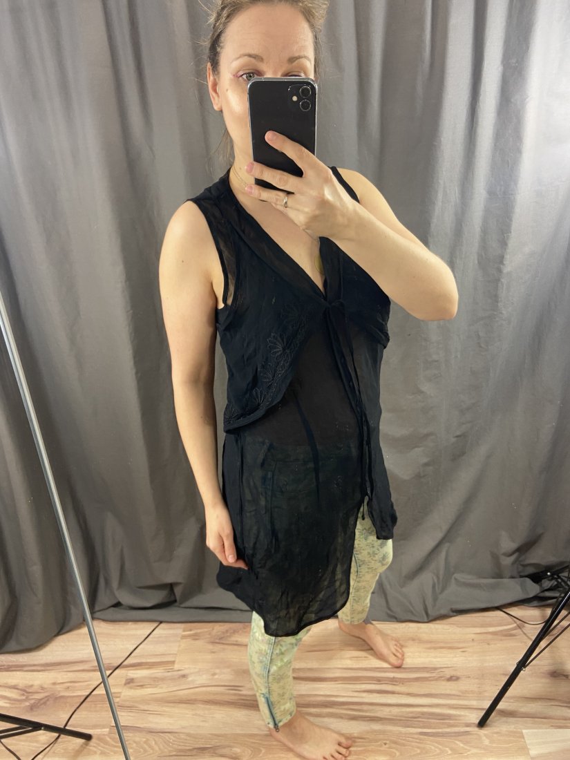 Lekko transparentna tunika z wiskozy z taką ala kamizelką haftowaną na przodzie. Bluzka jest zapinana na guziczki.