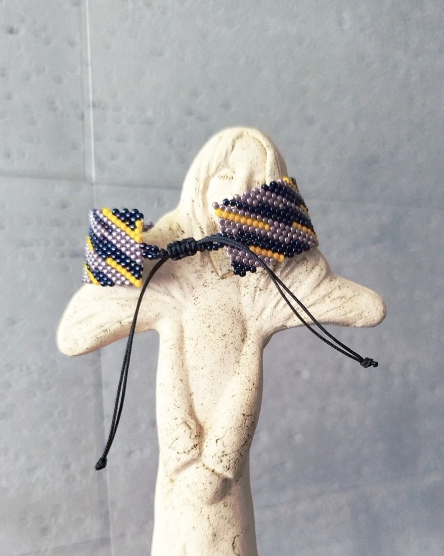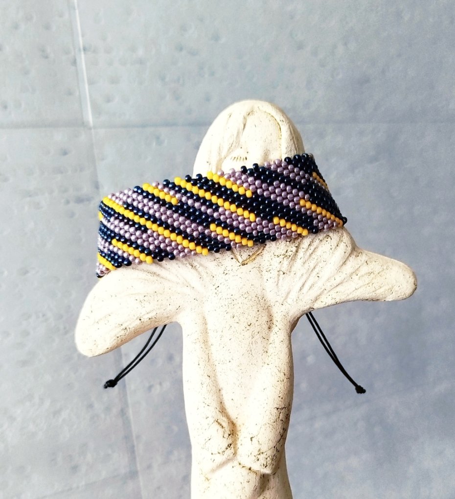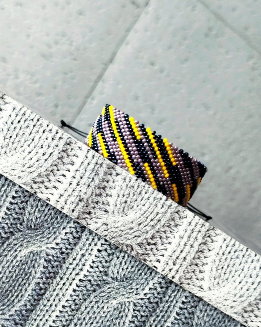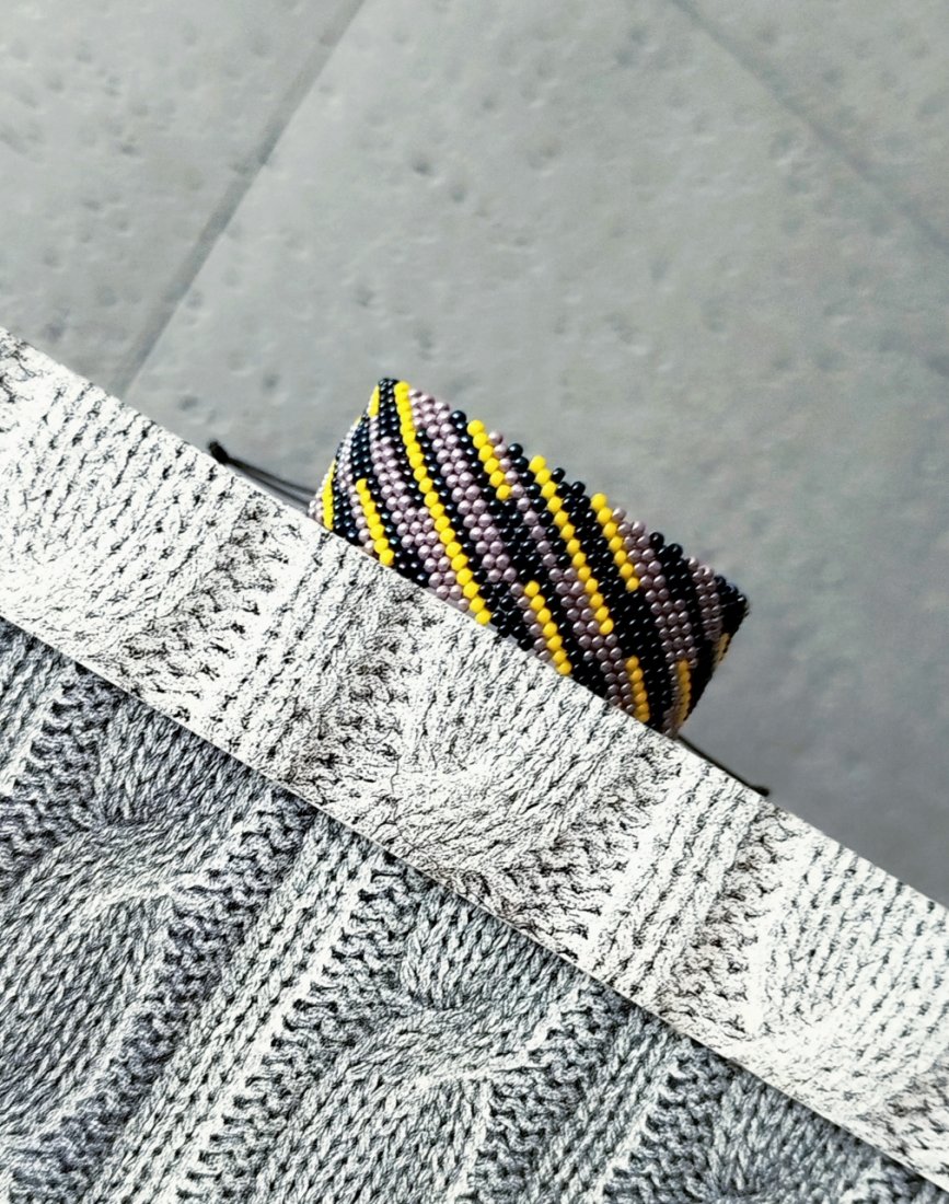 Efektowna bransoletka utkana ręcznie pracochłonną metodą beadingu ze szklanych japońskich koralików TOHO .