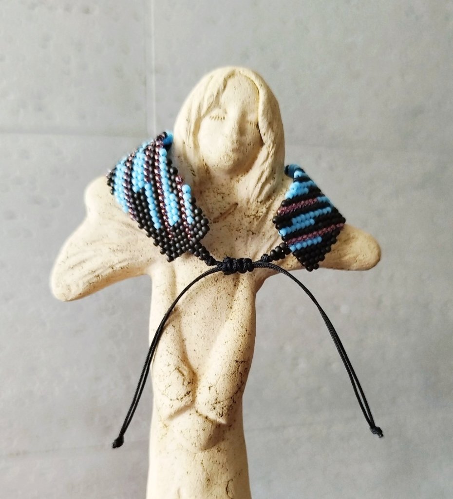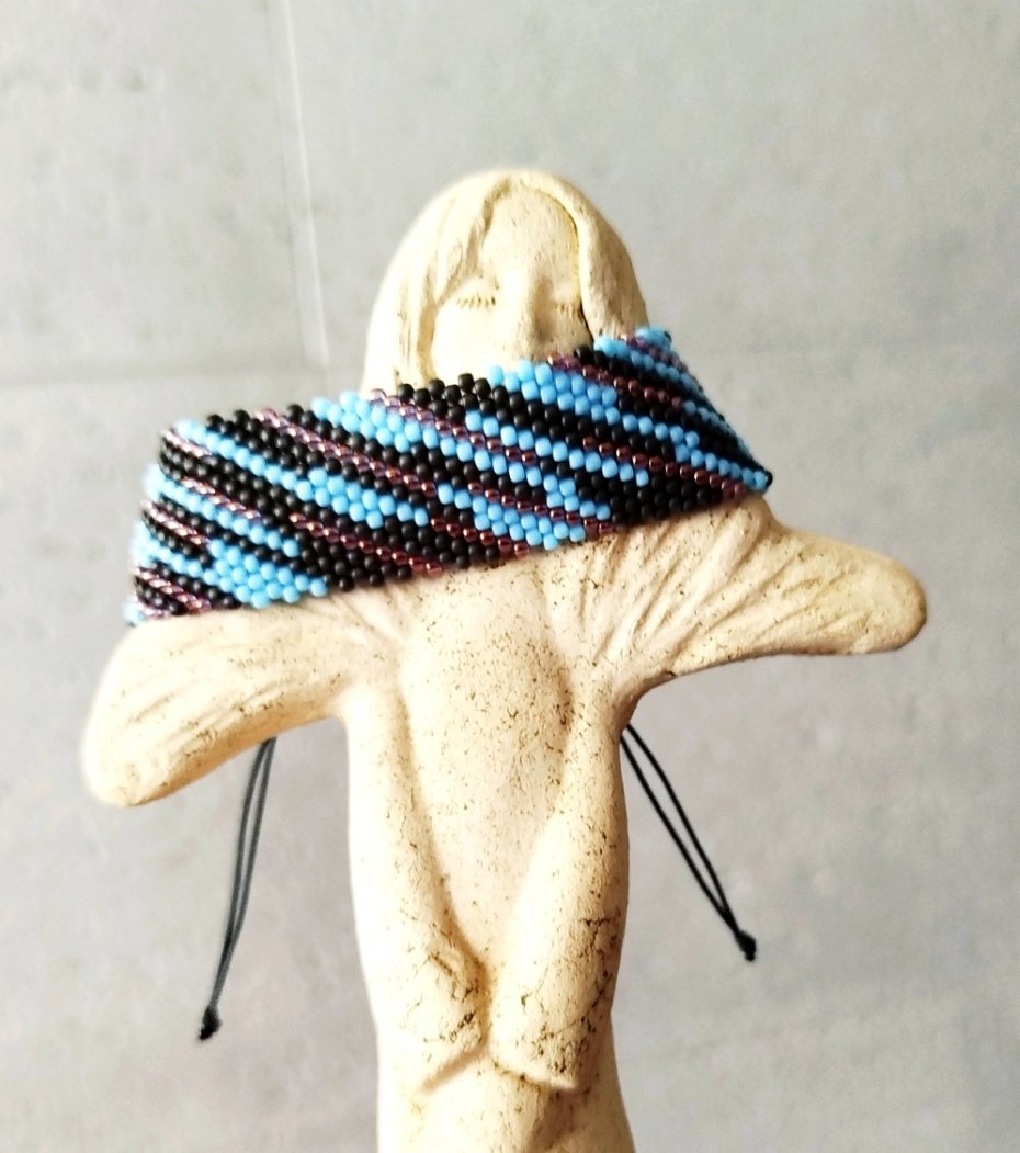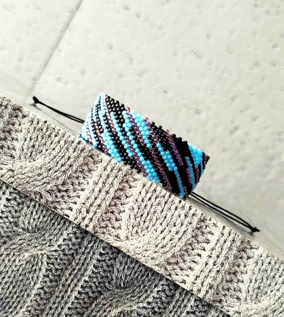 Efektowna bransoletka utkana ręcznie pracochłonną metodą beadingu ze szklanych japońskich koralików TOHO .