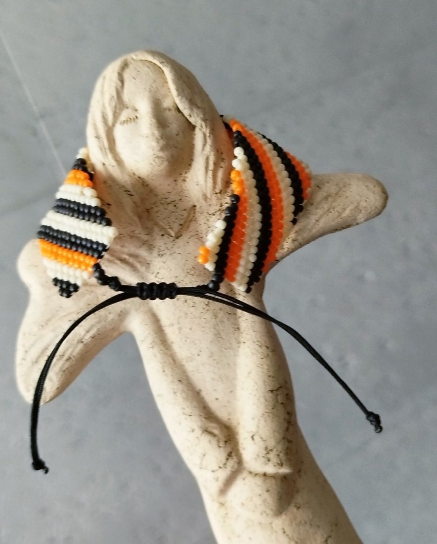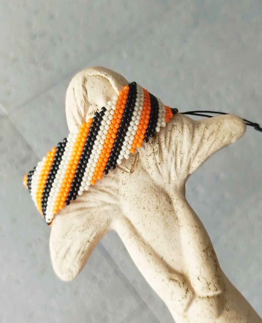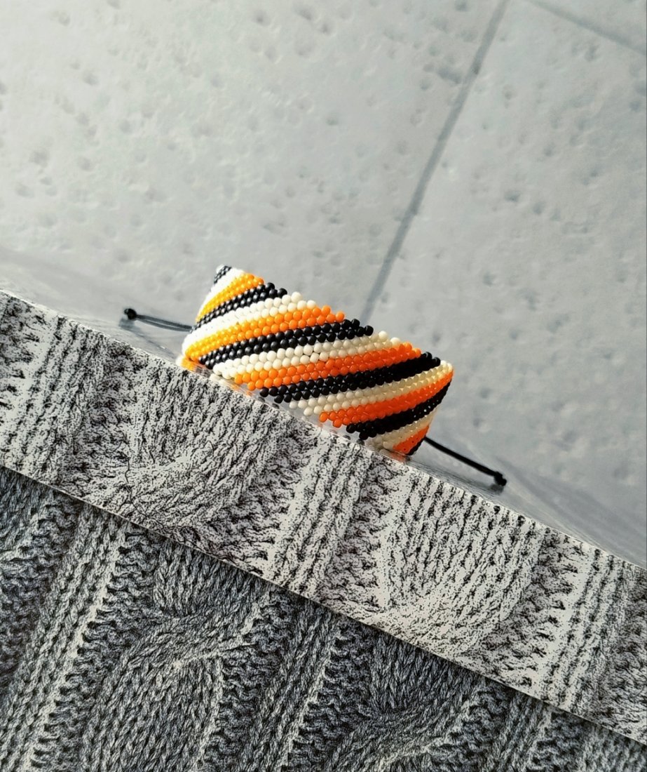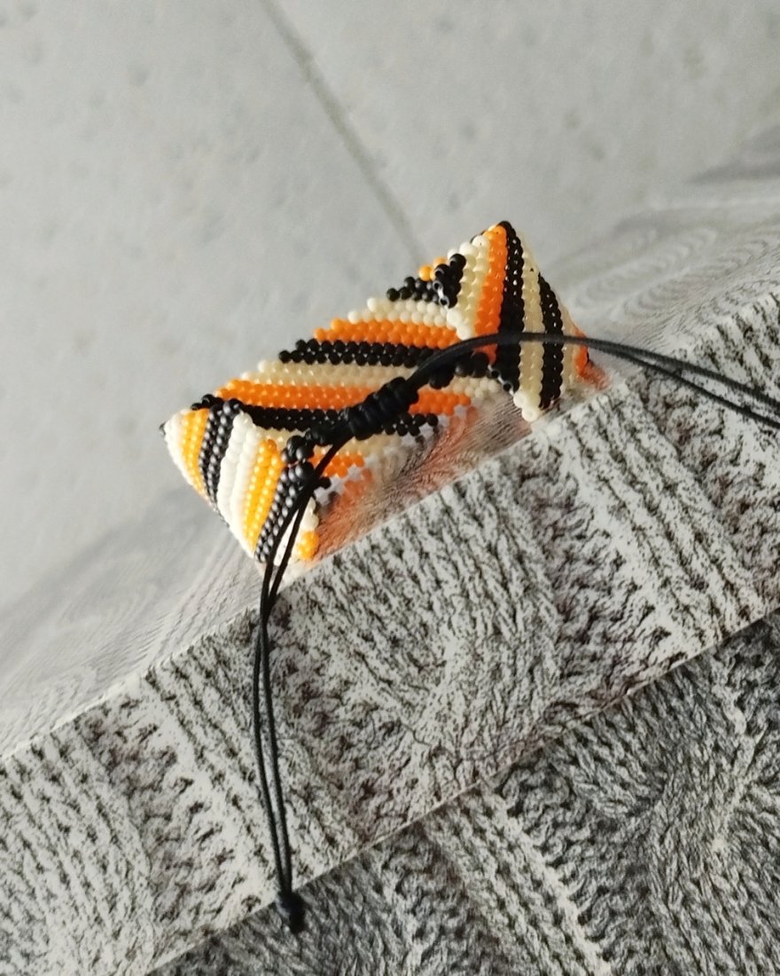 Efektowna bransoletka utkana ręcznie pracochłonną metodą beadingu ze szklanych japońskich koralików TOHO .