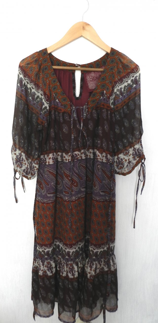 Sukienka w stylu boho w klimatycznych odcieniach brązu, fioletu, ecru, bordo