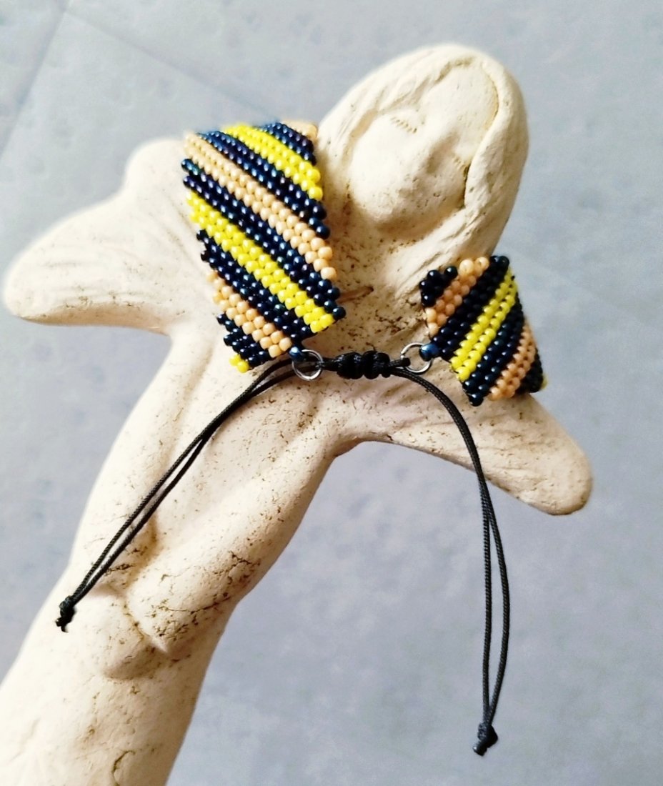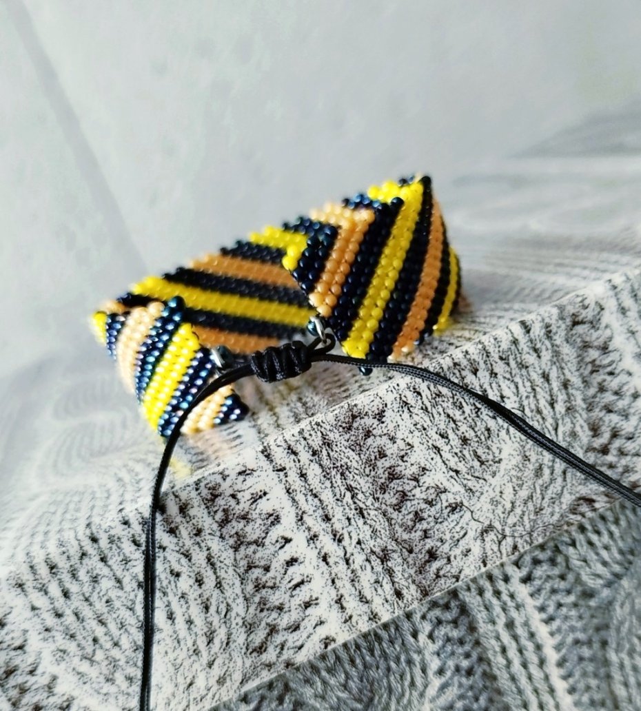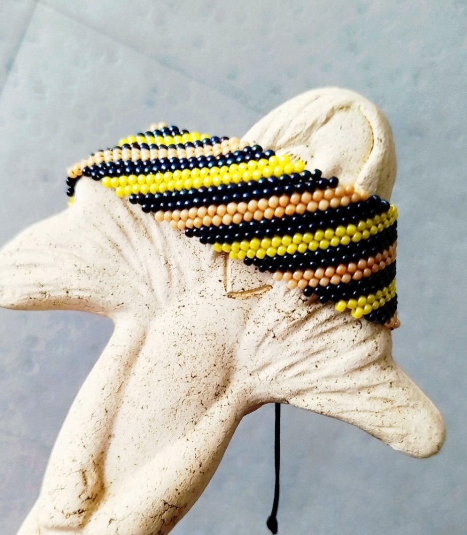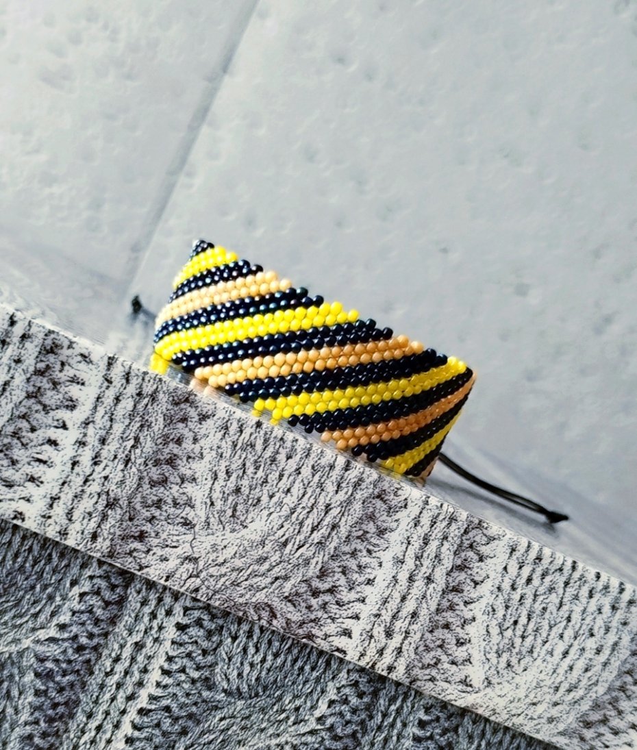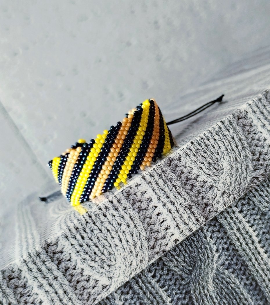 Efektowna bransoletka utkana ręcznie pracochłonną metodą beadingu ze szklanych japońskich koralików TOHO .