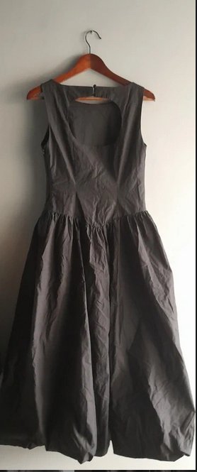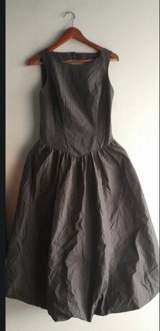 Długa sukienka z dopasowana góra i bombkowym dołem, pięknie się prezentuje na sylwetce zarówno do balerinek jak i glanów świetny materiał popelina nie lejący średniej grubości nadaje sukience stylu i formy, zapinana z boku na zamek długość 125 biust max 44x2 odcięcie/pas 40x2 stan idealny, kieszenie