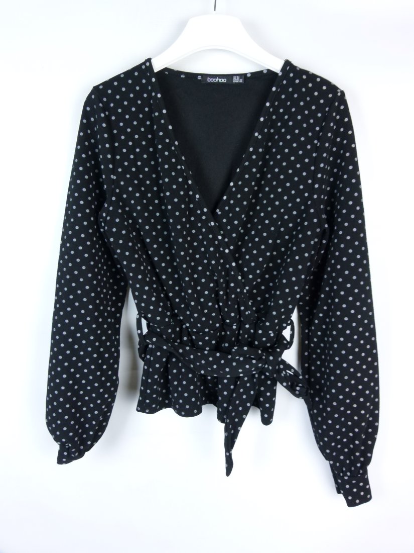 Tagi: #bluzka w groszki, #bluzka z długimi rękawami, #boohoo, #dekolt kopertowy