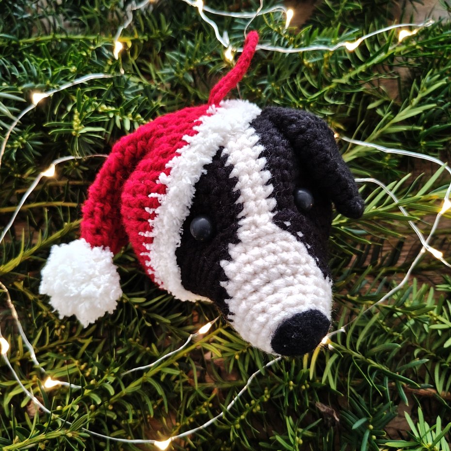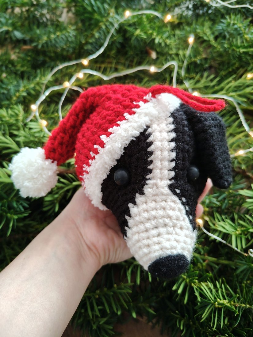 Szydełkowa ozdoba świąteczna w kształcie border collie to niepowtarzalny świąteczny drobiazg dla miłośników psów!