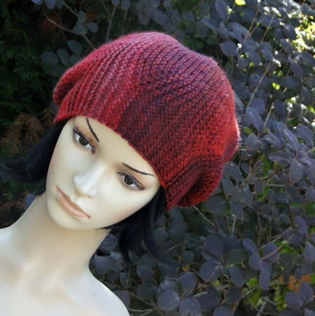 Czapa ( beret) wykonana ręcznie na drutach z rewelacyjnej włóczki prod. hiszpańskiej ( 53% virgin wool, 47% akryl), ciepła, miękka i bardzo przyjemna w dotyku. Świetnie przenikające się odcienie bordo i czerwieni. Czapka jest bezszwowa, dzięki czemu można dowolnie układać kolory przy twarzy.