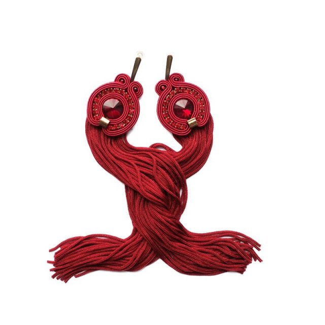 Eleganckie, długie i zmysłowe kolczyki wykonane metodą haftu soutache.