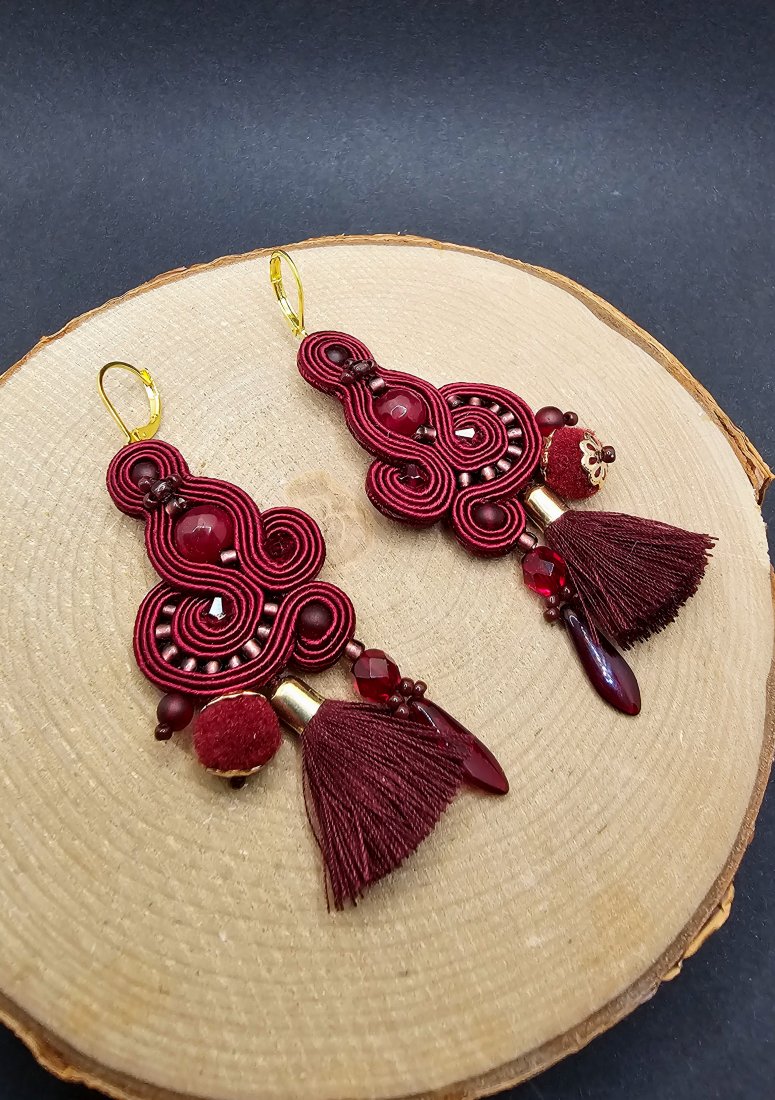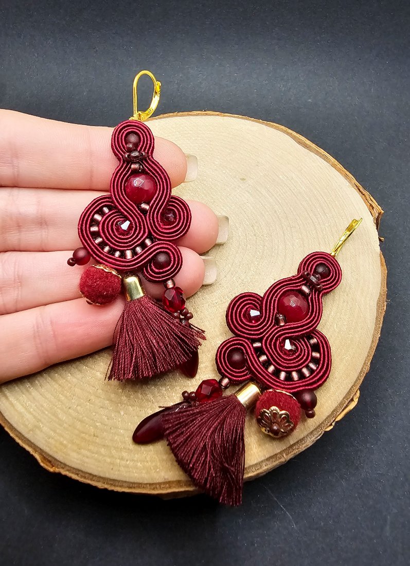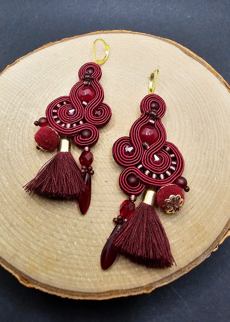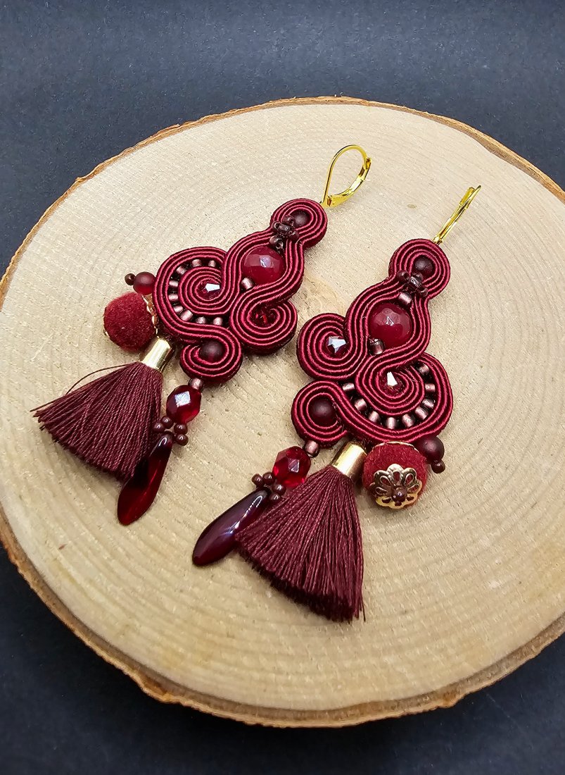 Lekkie, średniej długości kolczyki bardzo wygodne w noszeniu. Kolorystką idealnie dopasują się do wielu stylizacji. Biżuteria dla kobiet w każdym wieku, lubiących oryginalną biżuterię w stonowanych kolorach. Kolczyki w modnym bordowym kolorze.