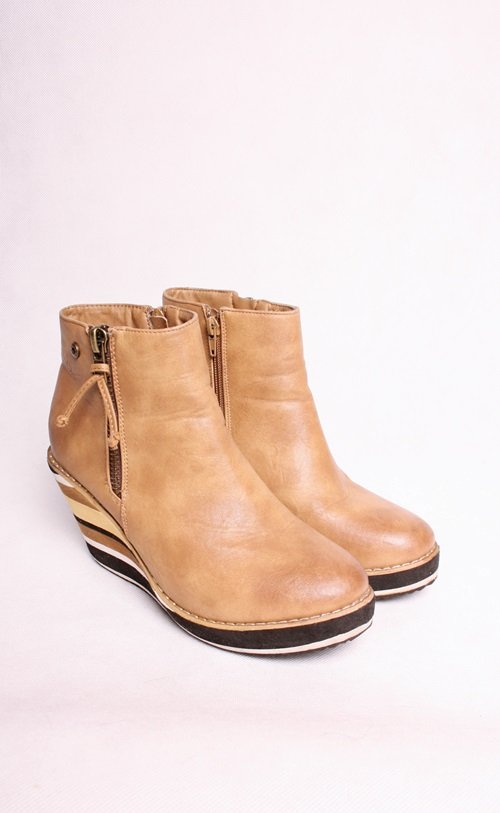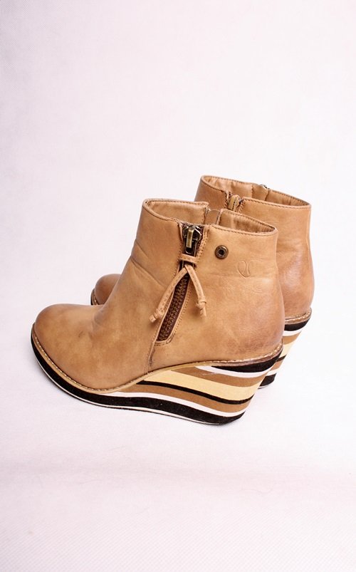 Beżowe botki na koturnie ze skóry ekologicznej,stan b.dobry -,,rozm 41.,dl.wkladki 26/26,5cm,,WYS.KOTURNA 9CM.,z przodu 2,5cm