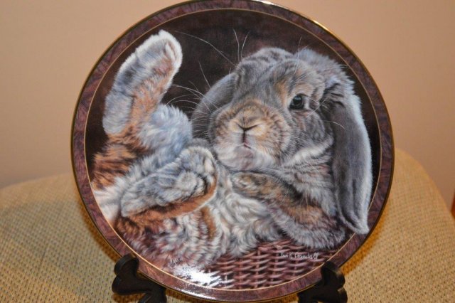 Śliczny porcelanowy talerz z motywem króliczka , sygnowany BRADEX