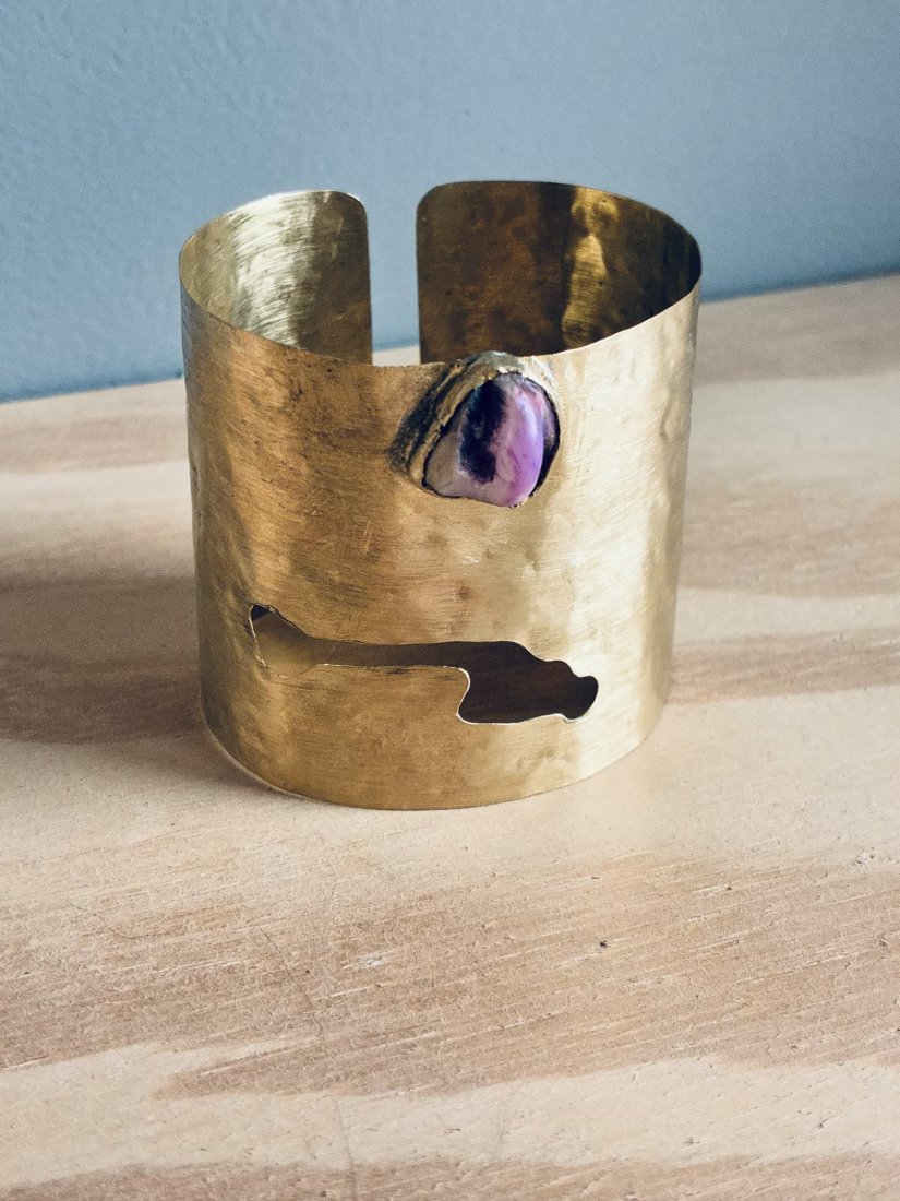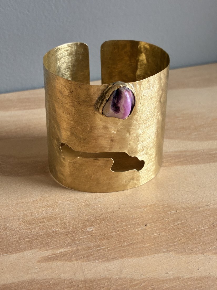 Tworzywa mosiądz - plastyczna , lekka i delikatna . Kamień oryginał wyspy wulkanicznej