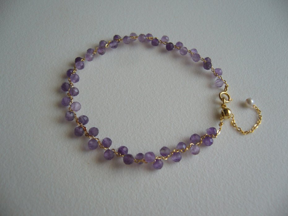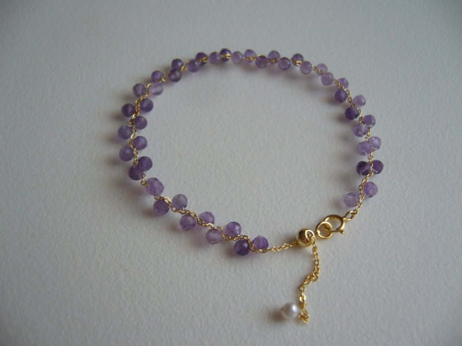 Delikatna bransoletka wykonana z naturalnych fasetowanych kamieni ametystu 3 mm