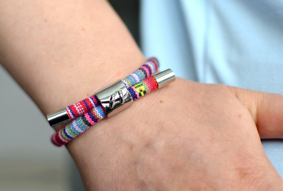 Uwaga: poszczególne sztuki mogą różnić się miejscem występowania wzoru na tkaninie, z której jest wykonana bransoletka.