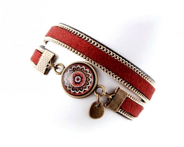Ta śliczna, wygodna bransoletka jest wykonana z zamszowego rzemienia wykończonego łańcuszkiem oraz obrazka, dopasowanego kolorystycznie, który umieszczony jest pośrodku.