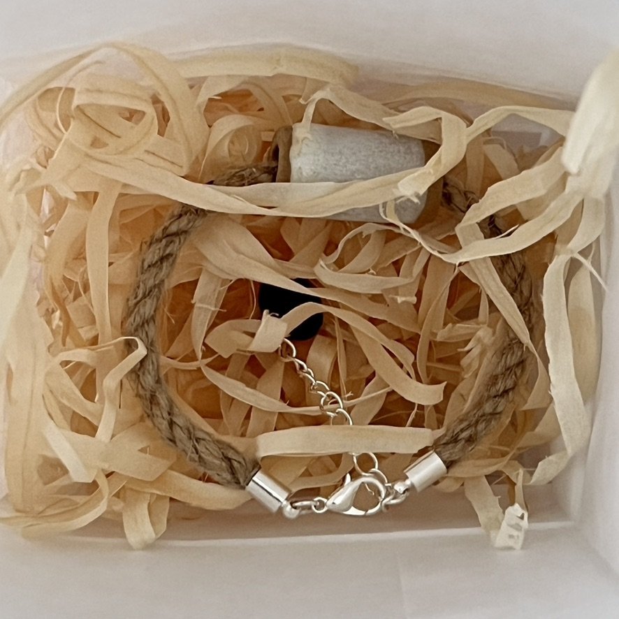 Bransoletka będzie wysłana na poduszce z wiórów drewnianych w małej papierowej torebce.
