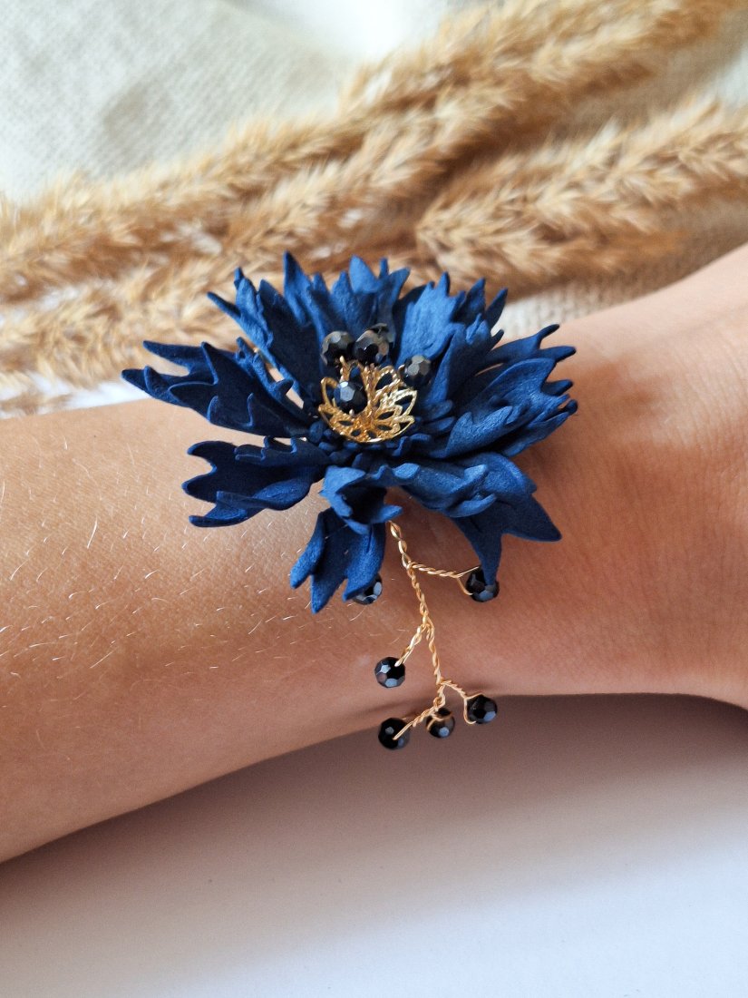 Bo ja mam coś, co skradnie Wasze serducha- bransoletka inspirowana właśnie tymi cudnymi kwiatami. Intensywny chabrowy kolor, czarne połyskujące koraliki na końcówkach pręcików i zkończeniach gałązek, no po prostu magia! Idealna na wyjątkowe okazje, ale też żeby dodać charakteru codziennym stylizacjom.