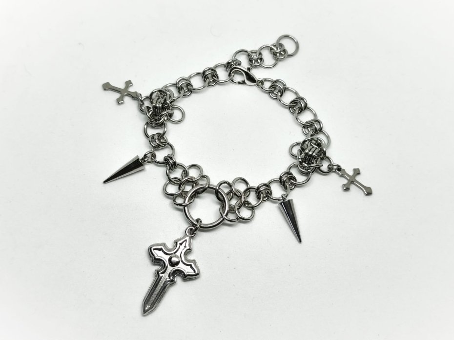 Chainmaille, z krzyżami, z kolcami, stal chirurgiczna, ciężka, masywna, gothic, punk, vampire, industrial, cyber goth, alternatywna, custom, wodoodporna, hipoalergiczna, metalowa, na koncert, festiwalowa, biżuteria kolczugowa, biżuteria mroczna, biżuteria alt, biżuteria industrial, biżuteria punk, biżuteria vampire