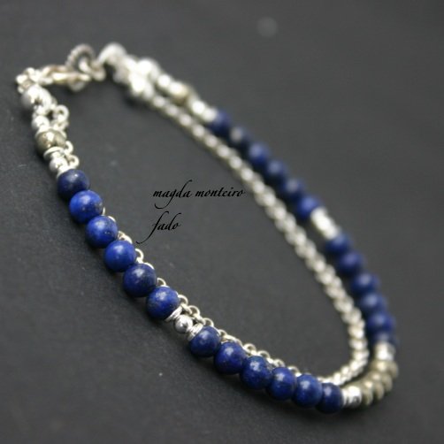 Bransoletka wykonana zostały w 100% ze srebra próby 925. Kamienie: kuleczki lapis lazuli z pirytem (0,4 cm) oraz kuleczki pirytu (0,4 cm) w srebrnym towarzystwie. Bransoletka pasuje na nadgarstek 16-17 cm. Na życzenie obwód bransoletki może zostać dopasowany do innego rozmiaru. Do kompletu można dokupić kolczyki. Biżuteria ozdobnie zapakowana. POLECAM!