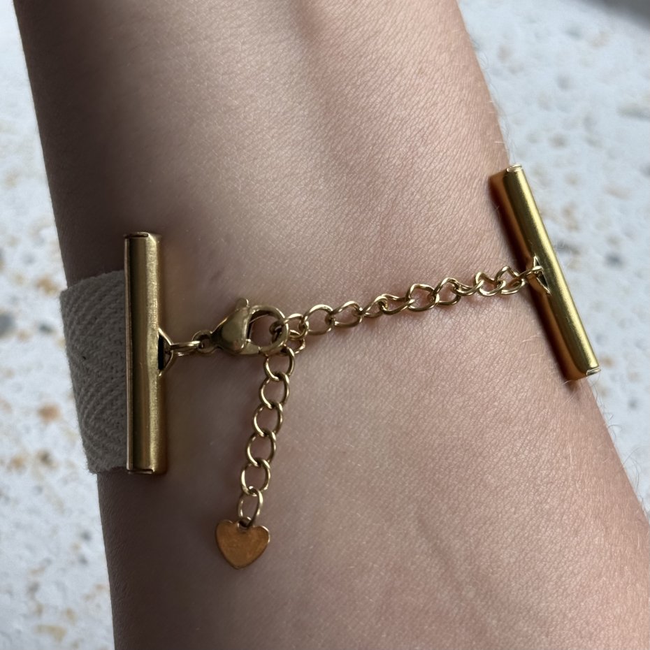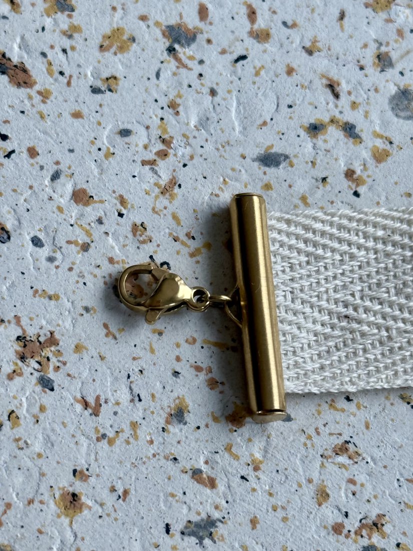 Metalowe elementy wykonane zostały ze stali nierdzewnej w kolorze złota. Zapięcie typu karabińczyk z możliwością przedłużenia jest solidne, ale może być trudniejsze do samodzielnego zapięcia jedną ręką (zwłaszcza przy długich paznokciach) – w takich sytuacjach najlepiej skorzystać z pomocy drugiej osoby.