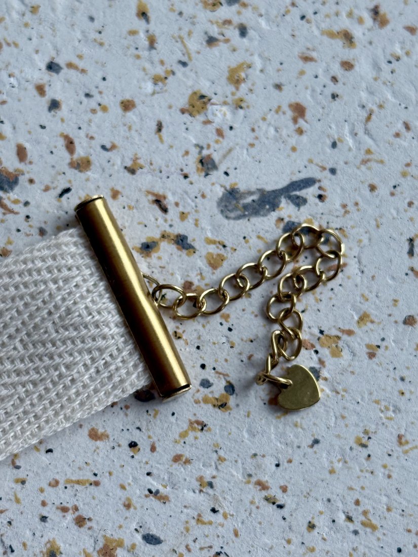 Wyjątkowa, ręcznie wykonana bransoletka, która łączy w sobie subtelność naturalnej bawełny i elegancję złotych detali. Delikatny haft przedstawiający drobne róże nadaje jej romantycznego charakteru. Bawełniana tasiemka ma szerokość 2cm.
