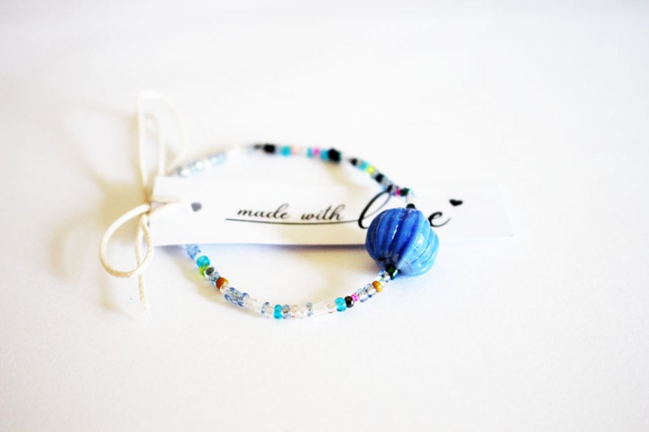 Każda inna, niepowtarzalna, 100% handmade, głównie z koralikami ze szkła i kamieni. Większe koraliki mają wielkość ok 1 cm (czasem mniejsze, czasem większe). Nawleczone na elastyczną, lekko rozciągliwą żyłkę, bardzo łatwe we wkładaniu i ściąganiu.