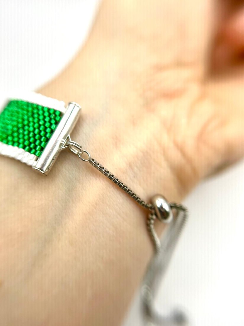 Bransoletka handmade białozielona z koralików Miyuki na regulowanym zapięciu :)