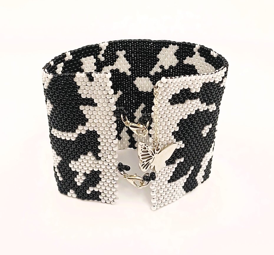 Piękna, szeroka bransoletka z japońskich, szklanych koralików toho.