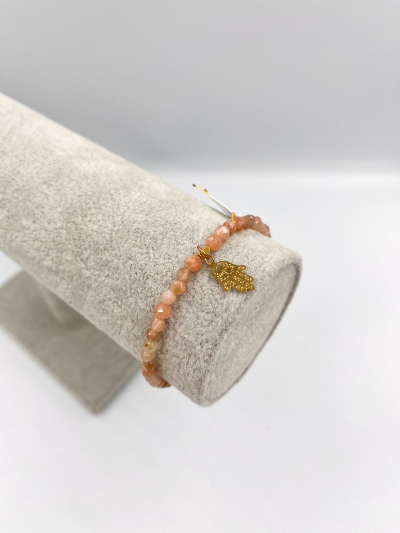 Przepiękna i niesamowicie pogodna, ciepła bransoletka z kamienia słonecznego z zawieszką hamsy. Idealna do wielu stylizacji i przede wszystkim bardzo łatwa w połączeniu z innymi kamieniami i kolorami.