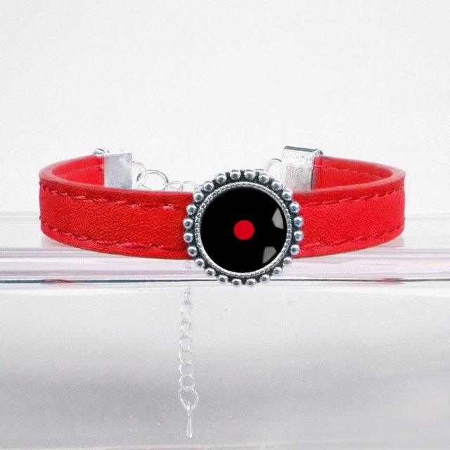 Modna bransoletka, ręcznie wykonana, z unikatową grafiką artystyczną umieszczoną pod wypukłym szkłem tzw. kaboszonem, dającym efekt głębi w oprawie w kolorze srebrnym. Grafika jest najwyższej jakości, bardzo wyraźna i nasycona, wywołana na wysokiej klasy papierze fotograficznym. Oczko z grafiką przymocowane do eleganckiego rzemienia ze skóry ekologicznej. Elementy metalowe hipoalergiczne.
