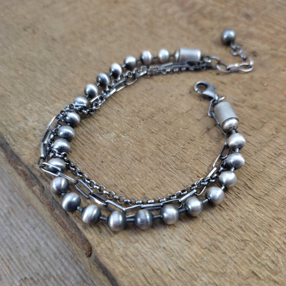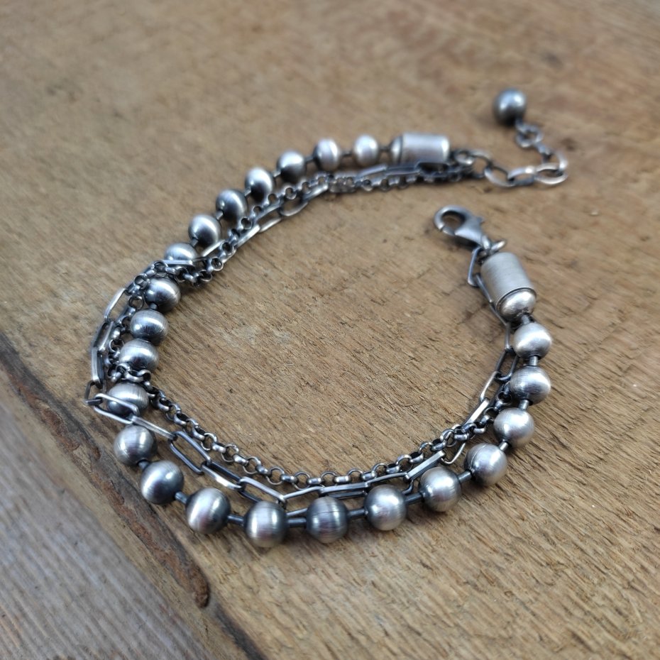 Bransoletka wykonana ze srebra próby 925, oksydowanego i wypolerowanego. Długość bransoletki wynosi ok. 18/19/20 cm, plus łańcuszek regulacyjny ok. 2 cm. (Proszę wpisać w komentarzu, w przypadku braku wysyłamy 19 cm). Średnica łańcuszków 2.2-5 mm. Elegancko zapakowana.